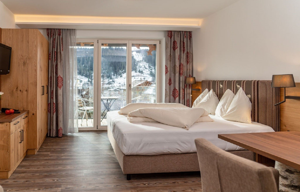 Die modernen Zimmer, Suiten und Appartements vereinen alpines Holzambiente mit Komfort, Balkon oder Terrasse und kostenlosem WLAN. Nach aktiven Tagen lädt der großzügige Wellnessbereich mit beheiztem Infinity-Pool, Sauna, Dampfbad und Naturbadeteich zur Entspannung ein.